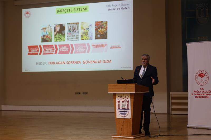 Muğla Sıtkı Koçman Üniversitesi Atatürk Kültür Merkezi B Salonunda yoğun katılımla gerçekleştirilen toplantının açılış konuşmasını yapan Muğla İl Tarım ve Orman Müdürü Seyfettin Baydar, Muğla'nın tarımsal üretimde önemli bir potansiyele sahip olduğunu vurguladı. Tarladan sofraya kadar izlenebilir ve sürdürülebilir bir üretim sistemi hedefiyle geliştirilen B-REÇETE Sistemi'nin Ocak 2026 itibarıyla pilot uygulama kapsamında hayata geçirildiğini belirtti.