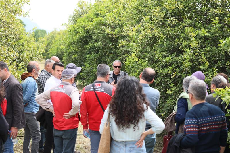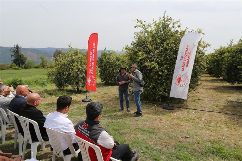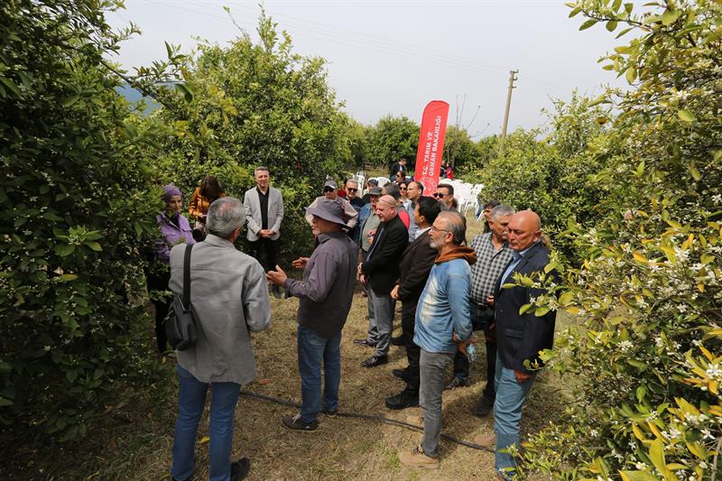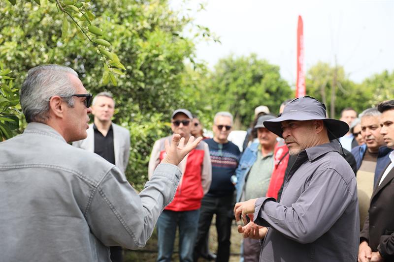 Program kapsamında üreticinin bahçesinde yerinde incelemeler yapılırken, çiftçiler deneyimlerini paylaşma fırsatı buldu. DERİM modeli ile sahada bilginin daha hızlı yayılması, hataların azaltılması ve verimliliğin artırılması hedefleniyor.
