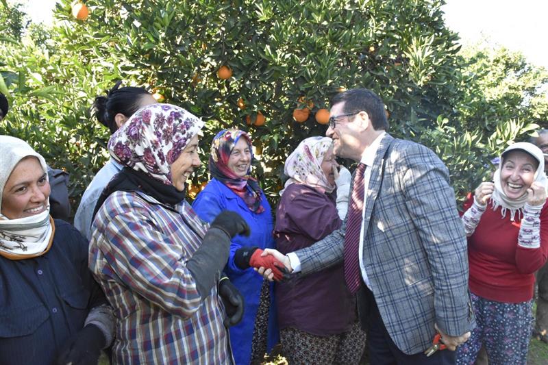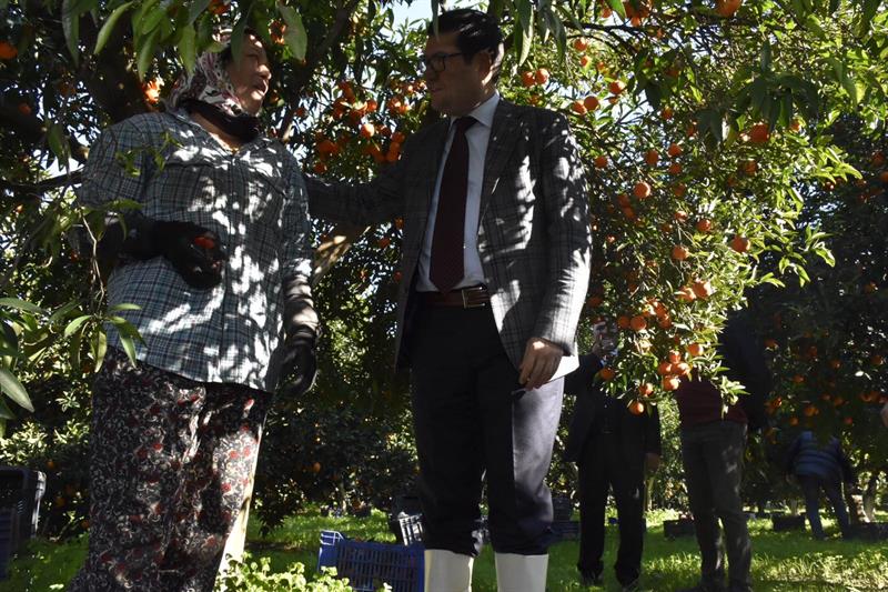 SAYLAK, İlçe Müdürlüğü ziyaretinin ardından, Döğüşbelen Mahallesinde bulunan Üretici Mustafa ÇELİK' e ait narenciye bahçesine geçti. Burada narenciye hasadı yapan işçilerle, Hamitköy, Zaferler ve Döğüşbelen Muhtarlarıyla görüşerek bilgiler aldı. Daha sonra işçilerle birlikte mandarin hasadı yaptı. Köyceğiz ziyaretini tamamlayıp Ula' ya hareket eden SAYLAK, bahçe kenarında yemek molası veren işçileri görünce onlarla selamlaşarak "afiyet olsun" dedi. SAYLAK' ın nezaketine kayıtsız kalmayan İşçiler kendisini sofralarına davet ederek öğünlerini paylaştılar. Kısa süre işçiler ile bir arada olan SAYLAK, onlarla tanışarak yaptıkları işlerle ilgili bilgiler aldı. Üreticilerin ve işçilerin her zaman yanında olduğunu tekrar dile getirdi.